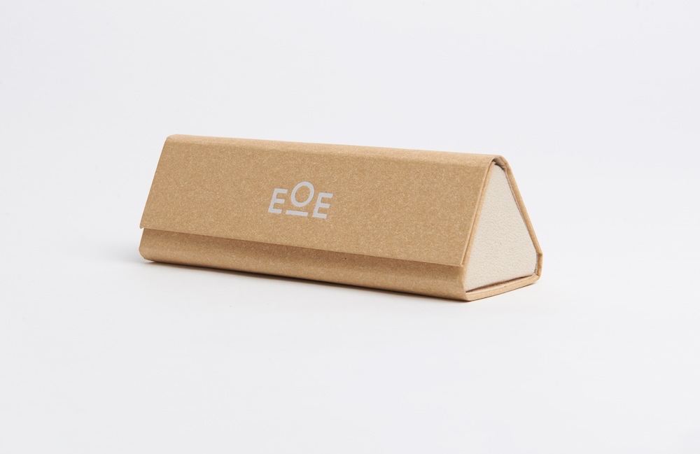 EOE Eyewear from Swedish Lapand, part of a company which has done much work in the area of sustainable materials development (www.regrind.se), puts their frames in a case produced with fully traceable Swedish or European paper. The eyewear case has a minimalistic design. All printed products and textiles from EOE are ecologically produced and traceable. For details: www.eoe-eyewear.com