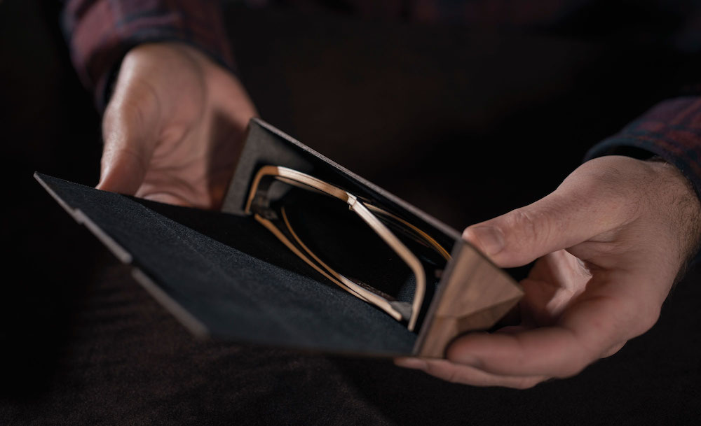At Rolf Spectacles the wooden glasses cases, like the frames, are made in the mountains of the Tyrol in Austria. The design is minimal, natural, and has no screws or metal parts.