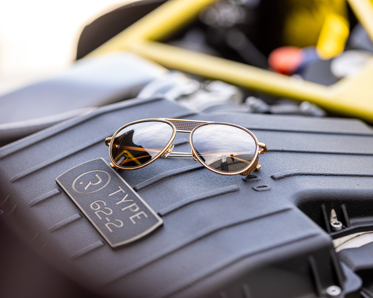 The two Radford x SALT. Optics models – RS-500 and RS-600 – have been produced exclusively in Japan. Radford Motors Type 62-2 inspired the colour palette, including the Limited Edition John Player Special (JPS) and the gold leaf colours are Pantone matched to the cars. The frames come with a genuine perforated leather case with velvet interior and custom eyewear cloth.