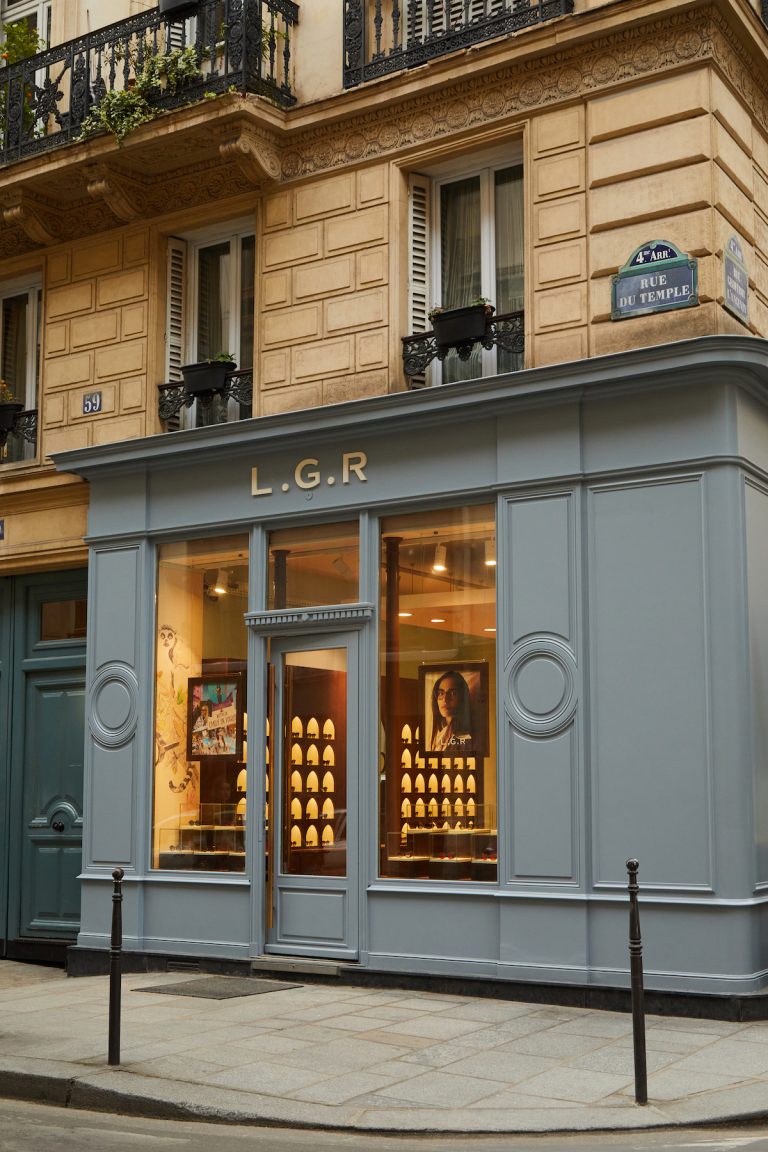 L.G.R, the Italian artisan brand founded by Luca Gnecchi Ruscone, has arrived in Paris, with a stand-alone store in a privileged position in the Marais in Rue du Temple. The company already has five stores in Italy in Rome (St. Peter’s and Piazza di Spagna), Milan, Florence and Venice, and the Paris opening represents its inaugural store abroad. The interior design is in keeping with these existing stores in Italy, with statement details, furniture and fittings that represent the heritage of the brand, and design features inspired by the founder’s grandfather’s store Ottica Bini and its original location in Eritrea. Above: exterior of the new branded stand-alone L.G.R store in Paris, France