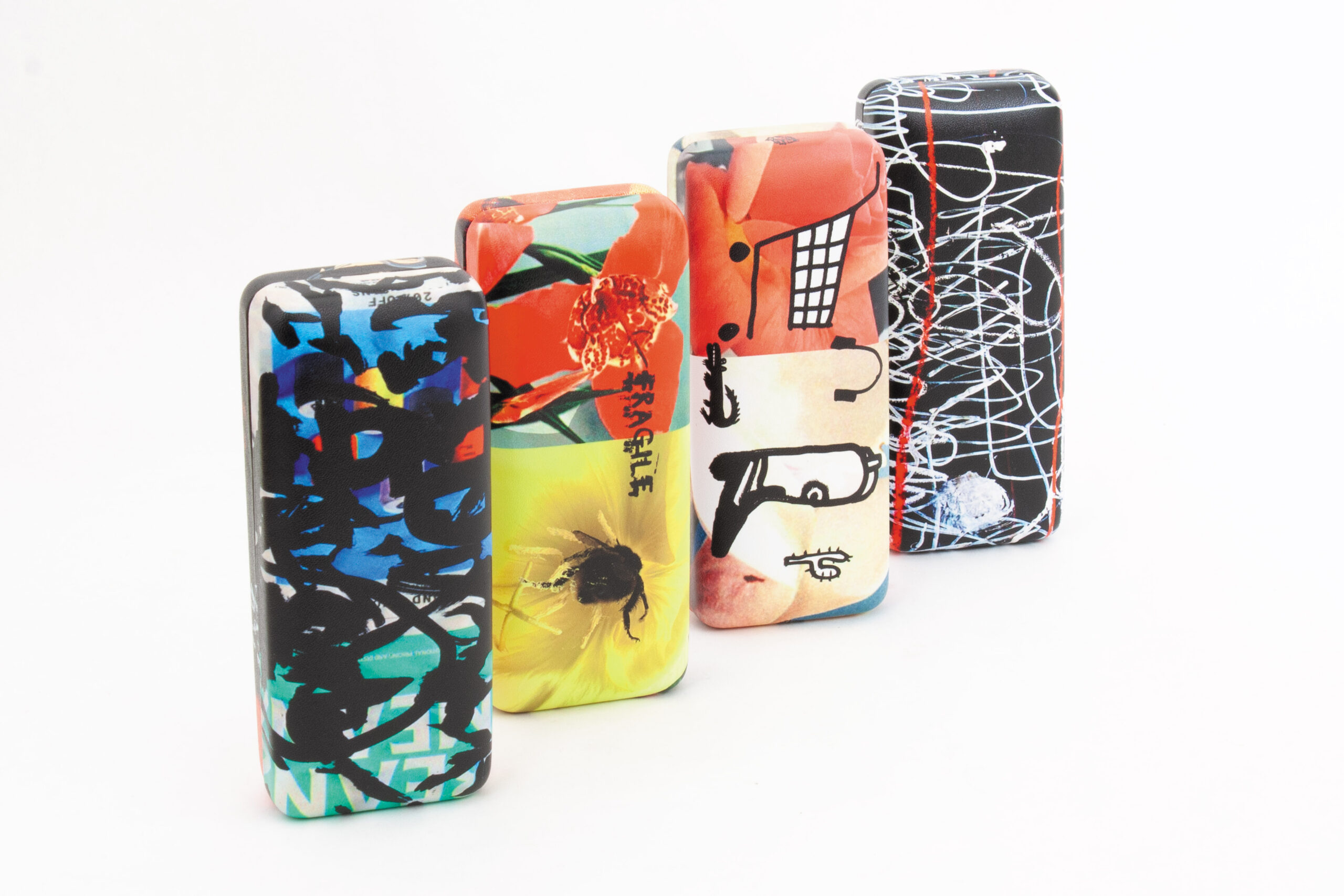 The cases and cloths have been created by the British-based collaborative duo Huntley Muir (Su Huntley and Donna Muir), comprising a new chapter in a creative partnership with l.a.eyeworks which spans decades. The artists started working with Gai Gherardi in 1980, during the eyewear company’s first year of business. l.a. eyeworks was a trailblazer at the time for the introduction of art into eyewear accessory design and brand imagery.