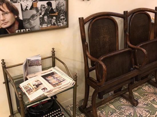 The interior is small and quaint with four dark wood chairs lining the off-white wall on retro lavender, cream, teal and green patterned – almost, but not quite ‘gaudy’ floor tiles that enhance the old-time feel. A somewhat modern spin on this antiquity comes from the black and white photo collage of icons of the past: Marilyn Monroe, Audrey Hepburn and even Ringo Starr – to name a few.