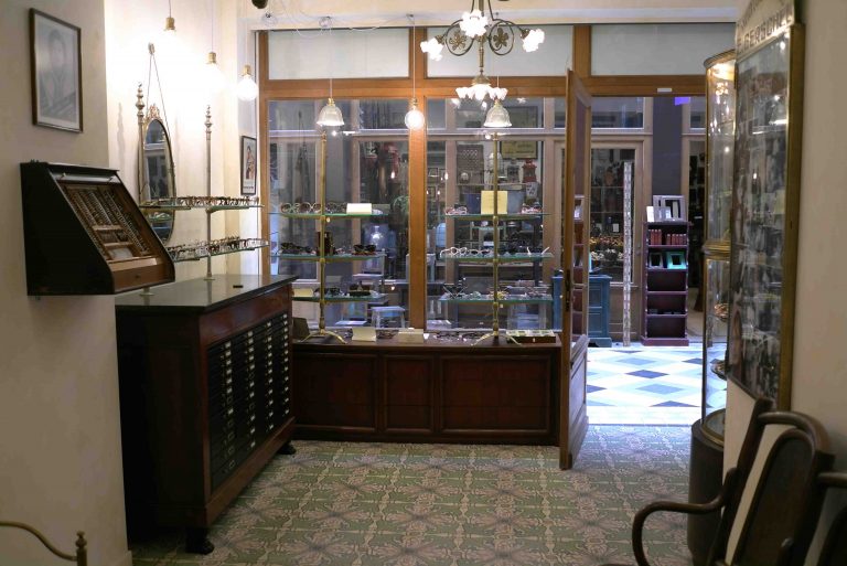 The boutique beautifully unites the antique and vintage eras of glamour with the vibrance and electricity of modern design, and the range of eyewear sold is no different. The oldest pair of glasses for sale dates back to 1890 – the frame comprises two simple bronze wire-like circles, held together by a tiny bridge, with no arms and a pair of pinching nose pads; the plethora of vintage designer pieces close the gap from ancient to new – with Lunettes Alf taking principle place as one of the most current artisan eyewear collections available in the store.