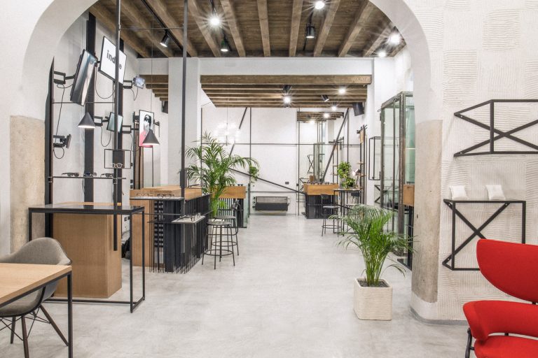The eyewear and sunglass designs available here offer a mix of wearable and very flamboyant metal and plastic shapes, colours and forms, and are priced – unexpectedly – at more moderate prices than we had imagined (some just under £200 – all made in China or Korea). Highlights include very classic plastic sun styles in easy colours – the collab with Tilda Swinton was a memorably classy one – and a few outlandish sci-fi pieces with metal details such as the capsule, Once Upon a Future. Much more is promised, with London Fashion Week being the immediate focus for September and, as in other GM shops, a changing and evolving theme, a part of the DNA of the label, will ensure nothing stays the same for too long.
