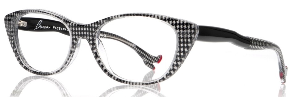 The Bocca series designed by Pascal Jaulent at Face à Face is a favourite with Eyestylist – we love the style, the humour and the creativity. Bocca Sexy is the latest adaptation of this super shape, crafted in hounds tooth acetate. The sculptured slinky temples are lithe, and yes, sexy! In addition to the duo-tone textured design, Bocca Sexy is available in ravishing red, and black and blush. www.faceaface-paris.com JG