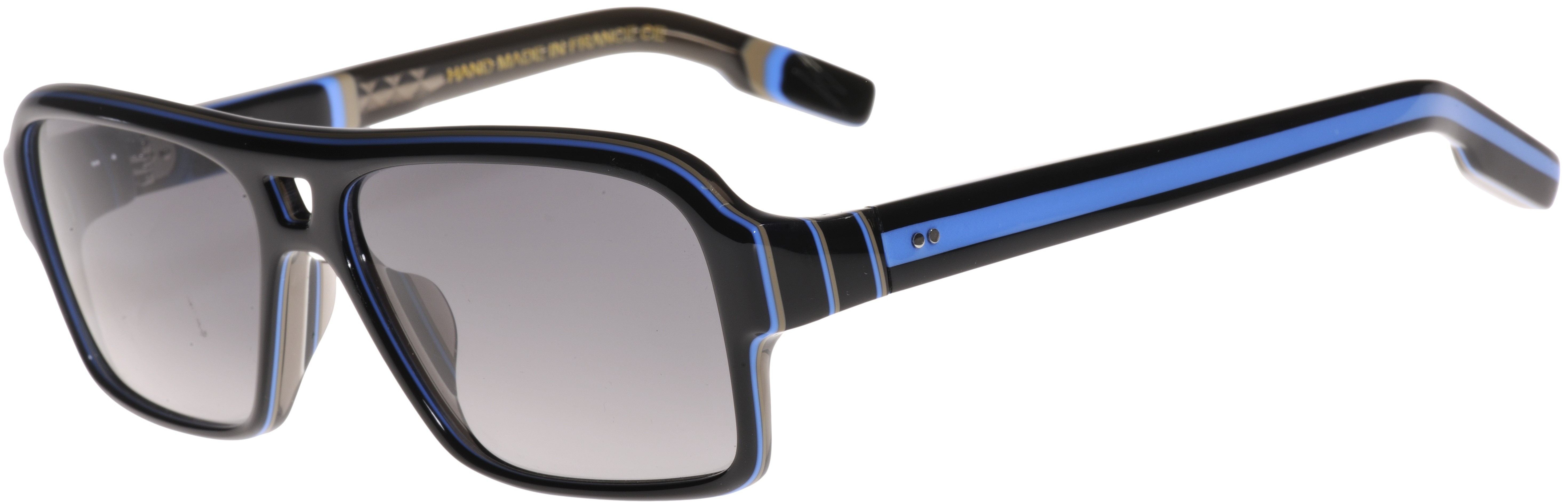 Derome Brenner expresses the language of lines with luxurious refinement in this striking sunglass design. The voluminous shape with gentle curves and a cut out nosepiece in fine quality black acetate is further defined with linear tones of blue and cocoa. This is just one wonderful example of the handmade sun collection that Xavier Derome and Aurelia Brenner have created for 2012. More information at www.deromebrenner.com JG